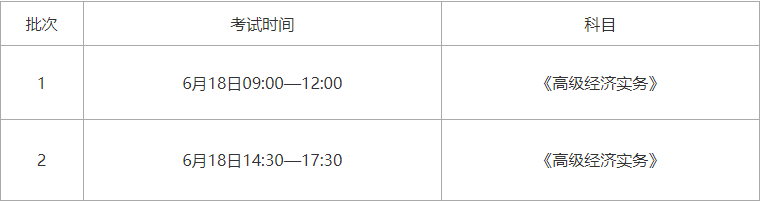 2022年高级经济师考试时间为:6月18日。